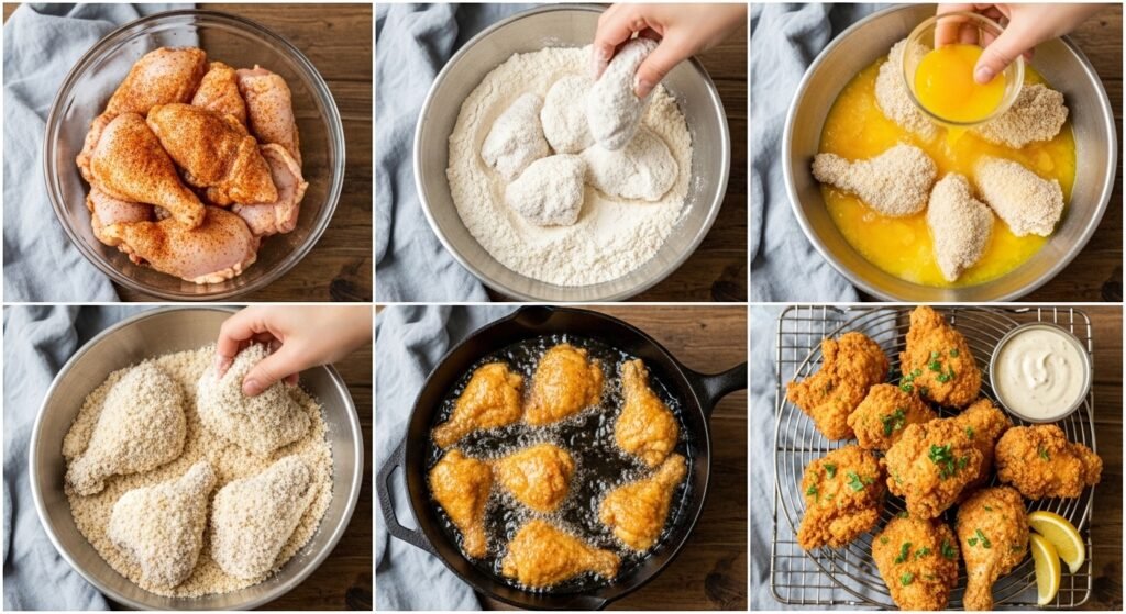 Follow these clear, dynamic steps to achieve that enviable crispy fried chicken: